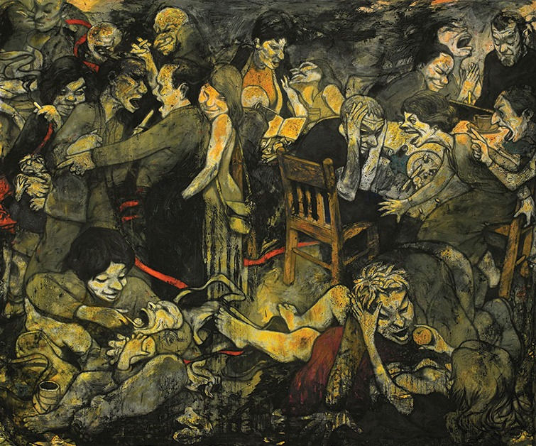 I came back with narrative in my mind and felt that Western painting had lost a most important thing when it could not tell stories, because we were told not to tell stories as this was not in the true interests of painting and not in our best interests as artists. I also came back wanting to make painting much more enjoyable again, filled with colour and strong tone and if you are using narrative you give yourself a lot to draw because you drag into your orbit many more shapes and situations. It doesn’t work just to tell the same story again and again. … Because I was still an abstract painter, I first tried to put it all into abstract painting and it was not until 1988 that the pressure for figuration became too great, so in 1988, at the age of fifty, artistically I became totally myself.”