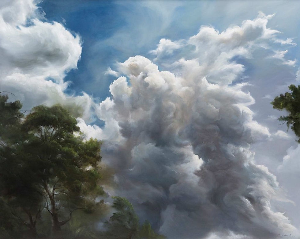 And while Gregg does not reference Sydney-based artist Min Woo Bang, I feel it would be remiss to leave him out of this company. The artist here possesses an unrivaled ability to portray the sheer power of nature against an unsuspecting landscape, to highlight our vulnerability, and mortality and the fragility of our physical and indeed emotional connections.